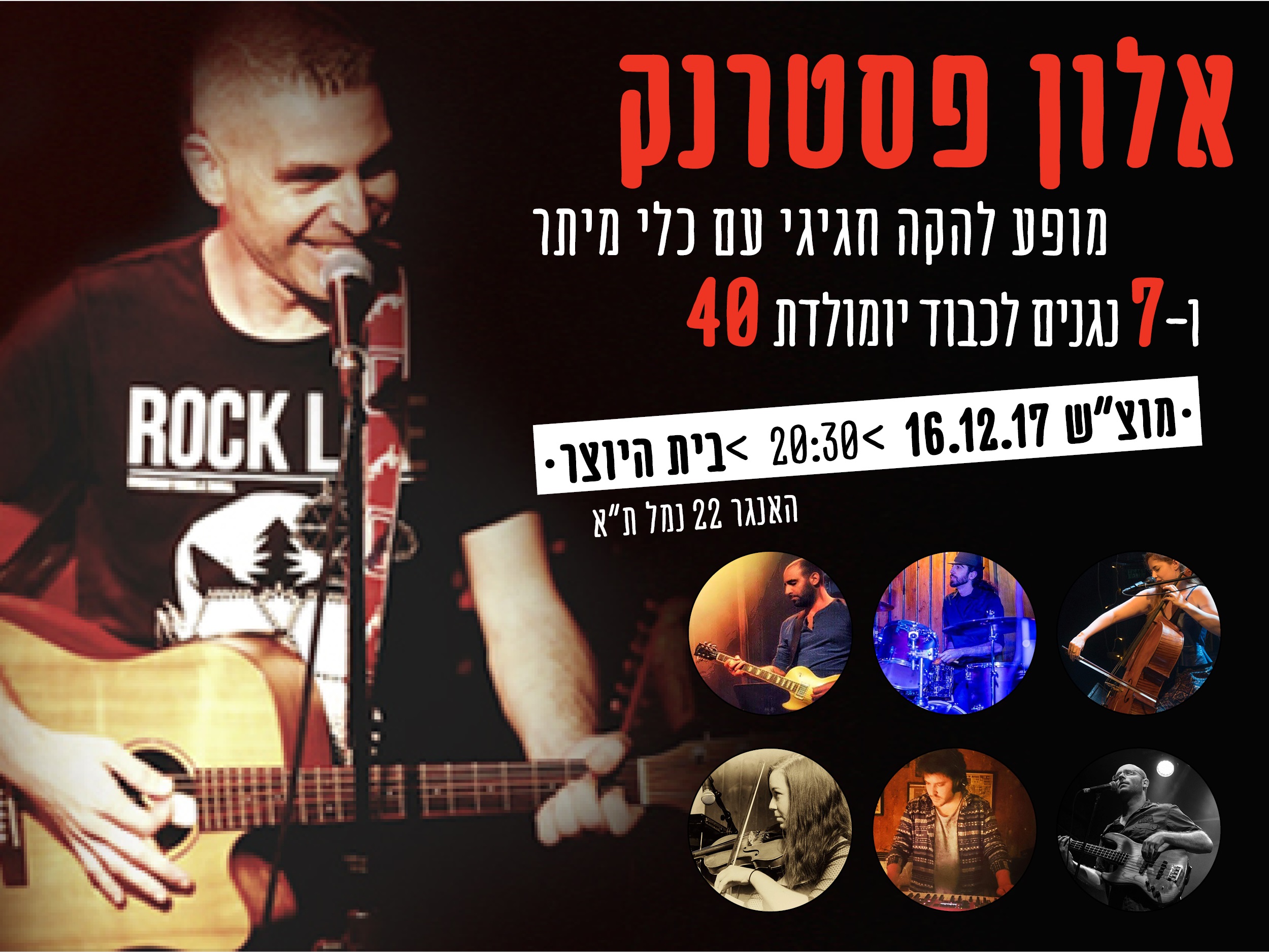 קצת יותר משנה לאחר ההשקה , לאחר סיבוב הופעות רחב בכל רחבי הארץ ואף בחו"ל ולקראת אלבום שני שעתיד לצאת בשנה הבאה, פסטרנק חוזר לבית היוצר להופעת להקה חגיגית ביותר , עם 7 נגנים לרבות כלי מיתר (צ'לו וכינור). ההופעה תתקיים ממש ביום הולדתו ה-40 🙂