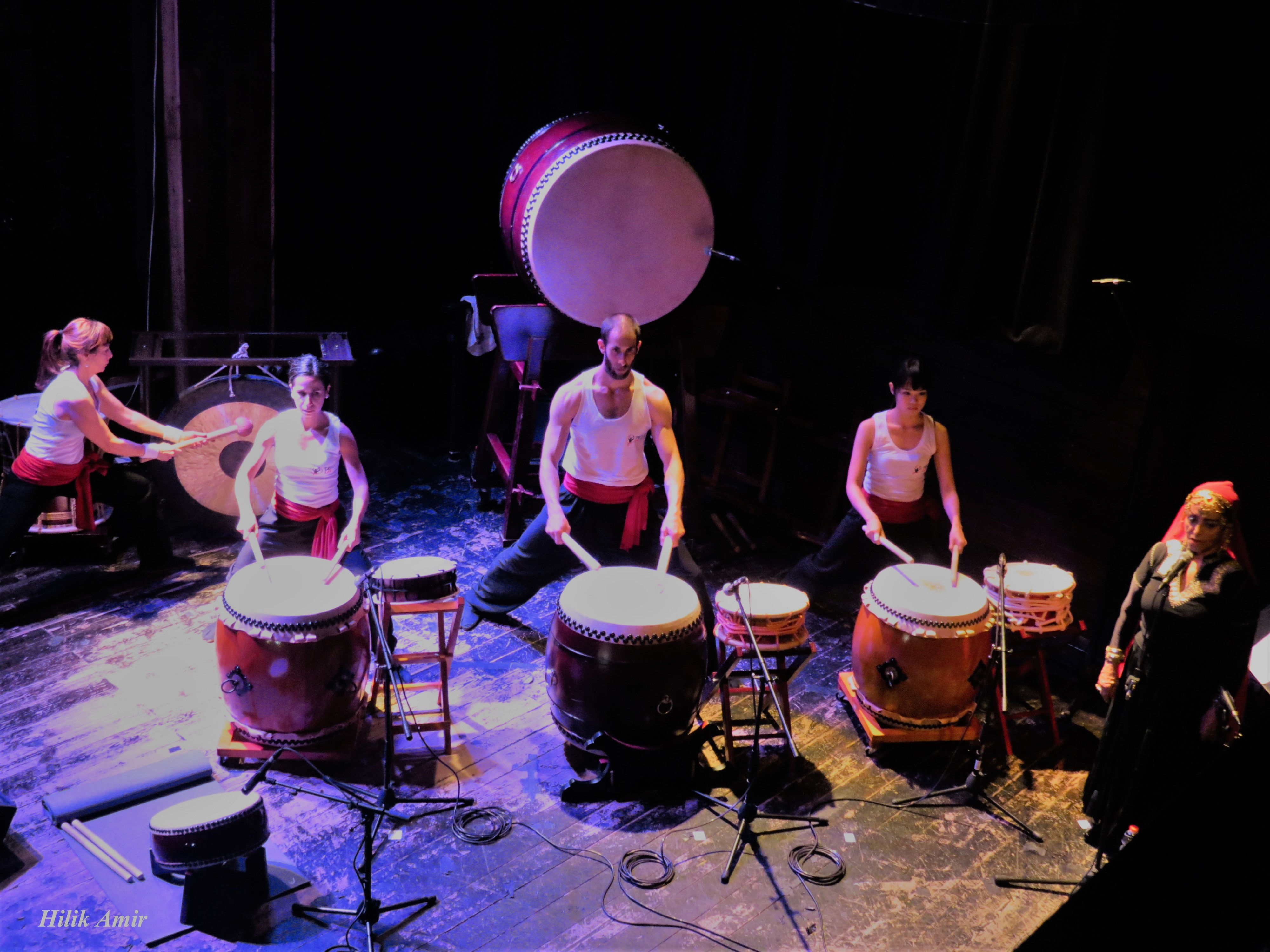 צביה בר-אברבנאל אמנית רב תחומית במופע משותף עם קבוצת המתופפים המקצועית של TAIKO LIFE – המתופפים בסגנון יפן וטאיוון.